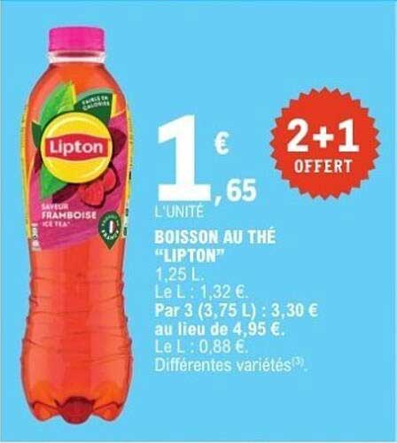 Découvrez la délicieuse boisson au thé Lipton, parfaite pour vous désaltérer. En ce moment, profitez de cette offre exceptionnelle qui vous permet de bénéficier de 2 bouteilles pour le prix d'une. C’est l'occasion rêvée d’essayer cette saveur framboise qui ravira vos papilles et d'en faire une boisson incontournable lors de vos journées ensoleillées.