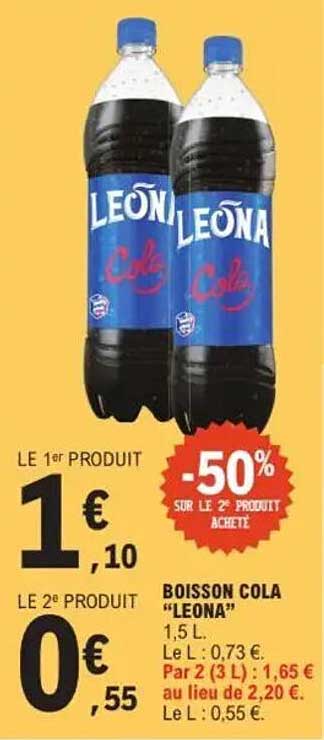 Découvrez l'offre de Boisson Cola "Leona" chez E.Leclerc! Cette offre fantastique est maintenant disponible dans le nouveau catalogue de E.Leclerc. Profitez de cette occasion et économisez considérablement sur votre achat.
