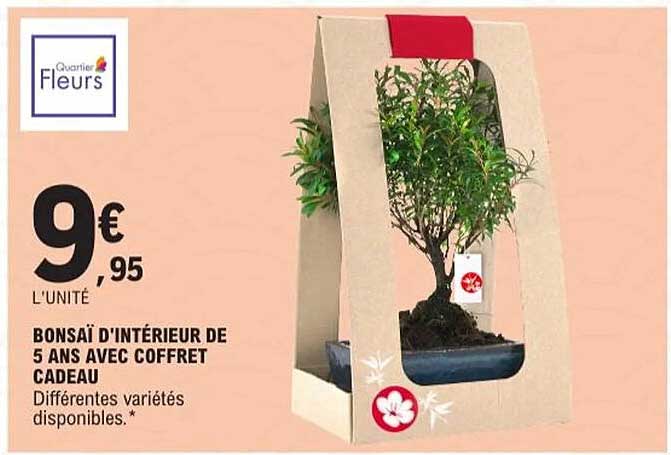 Découvrez l'offre de Bonsài D'intérieur De 5 Ans Avec Coffret Cadeau chez E.Leclerc! Cette offre fantastique est maintenant disponible dans le nouveau catalogue de E.Leclerc. Profitez de cette occasion et économisez considérablement sur votre achat.