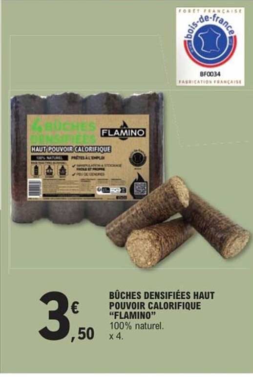 Offre de Bûches Densifiées Haut Pouvoir Calorifique “Flamino” chez E.Leclerc