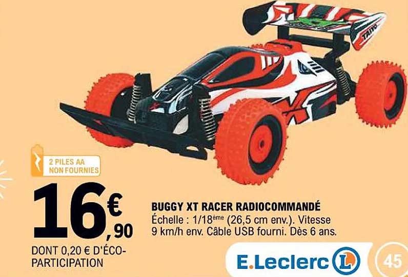 Découvrez l'offre de Buggy Xt Racer Radiocommandé chez E.Leclerc! Cette offre fantastique est maintenant disponible dans le nouveau catalogue de E.Leclerc. Profitez de cette occasion et économisez considérablement sur votre achat.