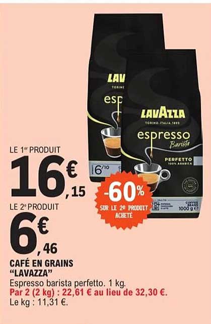 Découvrez l'offre de Café En Grains "Lavazza" chez E.Leclerc! Cette offre fantastique est maintenant disponible dans le nouveau catalogue de E.Leclerc. Profitez de cette occasion et économisez considérablement sur votre achat.