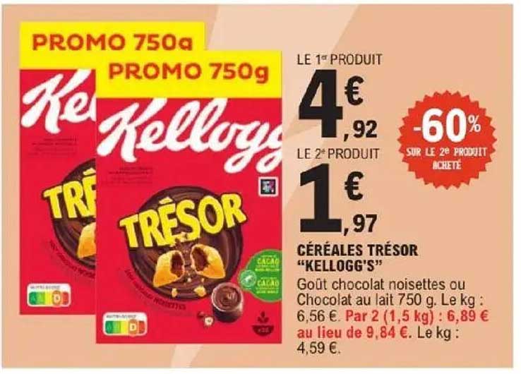 Découvrez dès maintenant la offre CÉRÉALES TRÉSOR “KELLogg's” dans le catalogue de E.Leclerc. Cette offre est valable du 25/03/2025 au 05/04/2025.