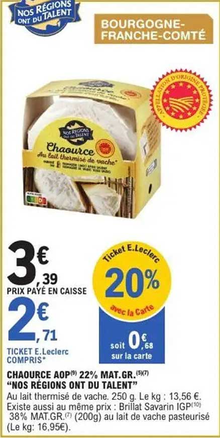 Offre de Chaource Aop 22% Mat.gr. chez E.Leclerc