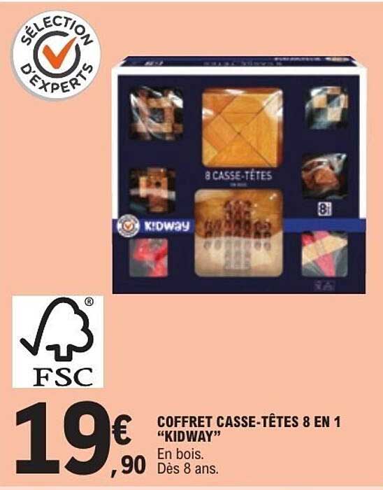 Découvrez dès maintenant la offre COFFRET CASSE-TÊTES 8 EN 1 "KIDWAY" dans le catalogue de E.Leclerc. Cette offre est valable du 14/10/2025 au 25/10/2025.