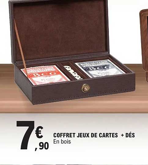 Découvrez l'offre de Coffret Jeux De Cartes + Dés chez E.Leclerc! Cette offre fantastique est maintenant disponible dans le nouveau catalogue de E.Leclerc. Profitez de cette occasion et économisez considérablement sur votre achat.