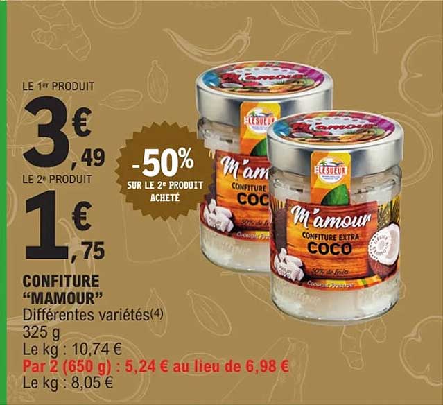 Découvrez l'offre de Confiture "M'amour" chez E.Leclerc! Cette offre fantastique est maintenant disponible dans le nouveau catalogue de E.Leclerc. Profitez de cette occasion et économisez considérablement sur votre achat.