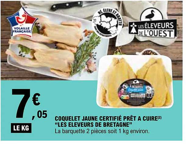 Découvrez dès maintenant la offre COQUELET JAUNE CERTIFIÉ PRÊT À CUIRE "LES ÉLEVEURS DE BRETAGNE" dans le catalogue de E.Leclerc. Cette offre est valable du 26/12/2024 au 31/12/2024.