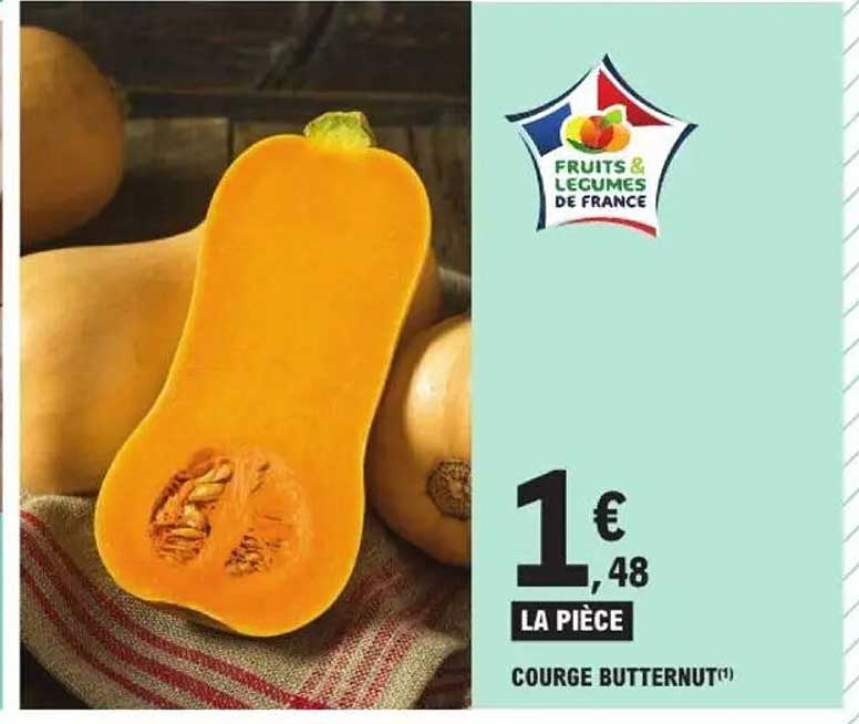 Découvrez l'offre de Courge Butternut chez E.Leclerc! Cette offre fantastique est maintenant disponible dans le nouveau catalogue de E.Leclerc. Profitez de cette occasion et économisez considérablement sur votre achat.