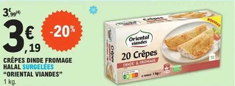 Offre de Crêpes Dinde Fromage Halal Surgelées "Oriental Viandes" chez E.Leclerc