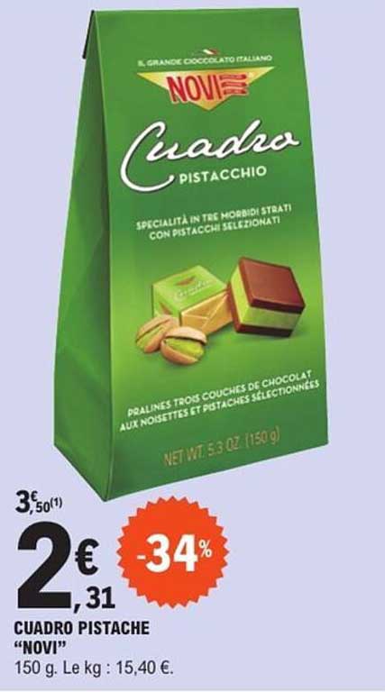 Découvrez dès maintenant la offre CUADRO PISTACHE "NOVI" dans le catalogue de E.Leclerc. Cette offre est valable du 02/01/2025 au 11/01/2025.