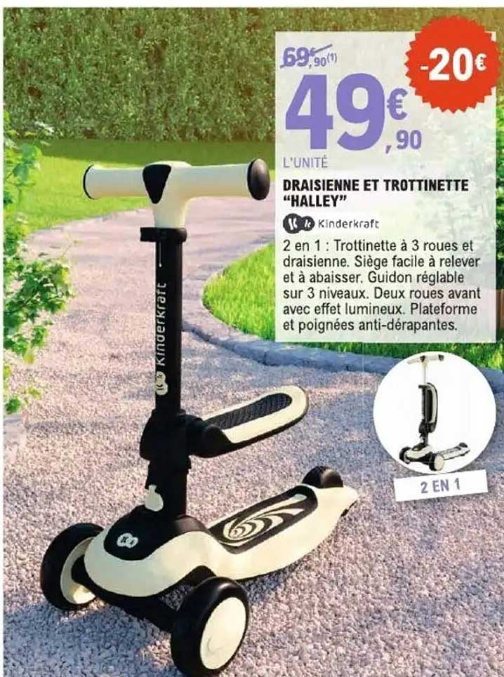 Découvrez l'offre de Draisienne Et Trottinette "Halley" chez E.Leclerc! Cette offre fantastique est maintenant disponible dans le nouveau catalogue de E.Leclerc. Profitez de cette occasion et économisez considérablement sur votre achat.