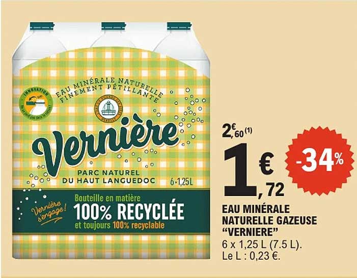 Offre de Eau Minérale Naturelle Gazeuse “Vernière” chez E.Leclerc