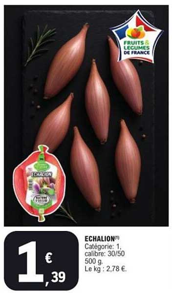 Découvrez notre offre exceptionnelle sur l'échalion, un incontournable de votre cuisine. Parfait pour relever tous vos plats, cet echalot est proposé à un prix imbattable. Pendant la durée limitée de cette promotion, vous pouvez vous procurer 500 g d'échalions pour seulement 1,39 €. C’est l’occasion rêvée d'ajouter une touche de saveur à vos recettes !