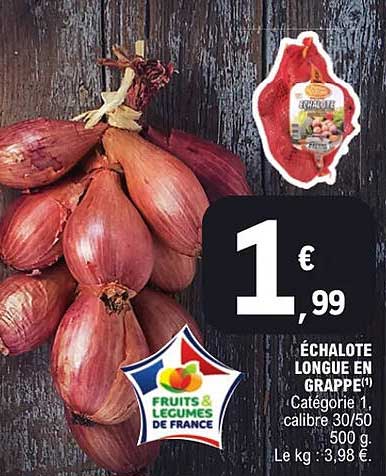 Découvrez l'offre de Échalote Longue En Grappe chez E.Leclerc! Cette offre fantastique est maintenant disponible dans le nouveau catalogue de E.Leclerc. Profitez de cette occasion et économisez considérablement sur votre achat.