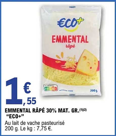 Découvrez l'offre de Emmental Râpé 30% Mat. Gr. "Eco+" chez E.Leclerc! Cette offre fantastique est maintenant disponible dans le nouveau catalogue de E.Leclerc. Profitez de cette occasion et économisez considérablement sur votre achat.