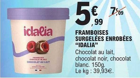 Découvrez les délicieuses framboises surgelées enrobées de chocolat de la marque Idalia, disponibles à un prix exceptionnel. Pendant la période du 4 au 16 novembre 2025, profitez de cette offre irrésistible qui met à l’honneur un mélange parfait de saveurs.