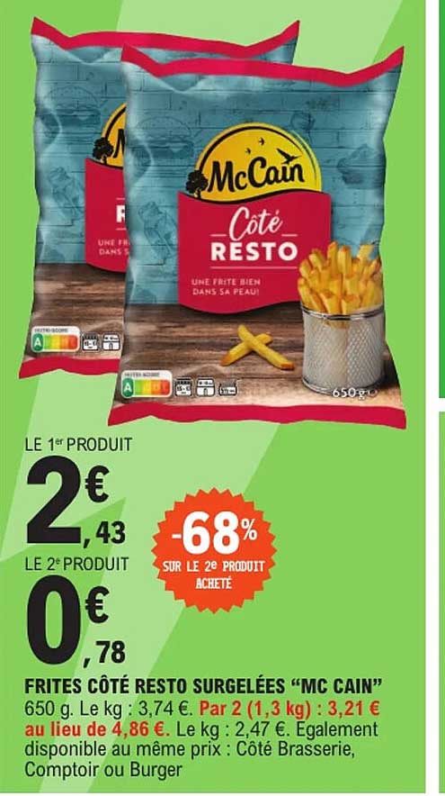 Offre de Frites Côté Resto Surgelées "Mc Cain" chez E.Leclerc