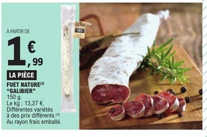 Découvrez le succulent Fuet Nature "Galibier", un incontournable pour tous les amateurs de charcuterie. Ce délicieux saucisson sec, au goût riche et authentique, est parfait pour agrémenter vos apéros ou vos plats préférés. Son prix attractif à partir de 1,99 € la pièce en fait une offre à ne pas manquer, disponible du 7 au 18 octobre 2025.