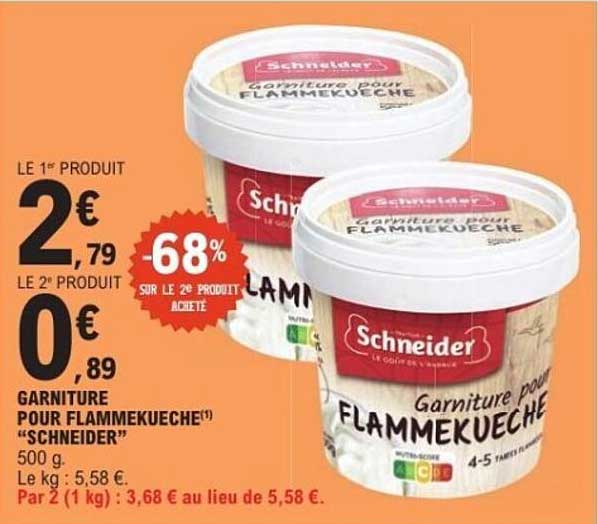 Découvrez dès maintenant la offre Garniture pour Flammekueche Schneider dans le catalogue de E.Leclerc. Cette offre est valable du 07/10/2025 au 18/10/2025.