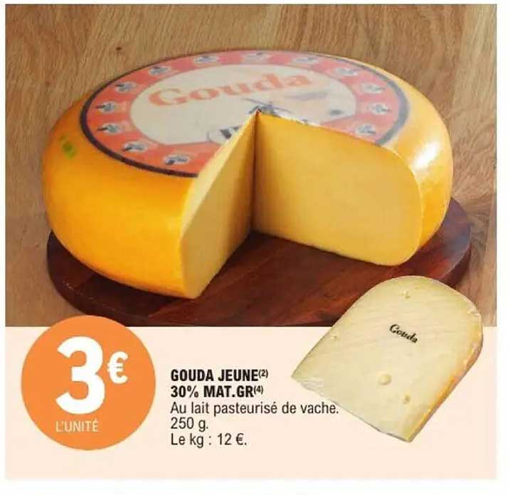 Découvrez l'offre de Gouda Jeune chez E.Leclerc! Cette offre fantastique est maintenant disponible dans le nouveau catalogue de E.Leclerc. Profitez de cette occasion et économisez considérablement sur votre achat.