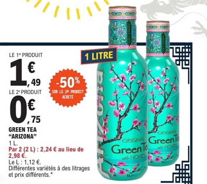 Découvrez l'offre de Green Tea "Arizona" chez E.Leclerc! Cette offre fantastique est maintenant disponible dans le nouveau catalogue de E.Leclerc. Profitez de cette occasion et économisez considérablement sur votre achat.
