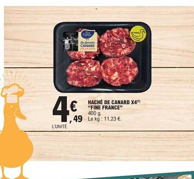 Découvrez dès maintenant la offre HACHÉ DE CANARD X4 "FINE FRANCE" dans le catalogue de E.Leclerc. Cette offre est valable du 30/09/2025 au 11/10/2025.