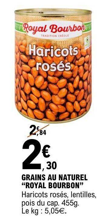 Découvrez une offre irrésistible sur les haricots roses de la marque Royal Bourbon ! Ce produit délicieux et nutritif est idéal pour compléter vos plats ou pour préparer de savoureuses recettes maison. Profitez de ce tarif exceptionnel valable du 2025-10-07 au 2025-10-19 et faites le plein de saveurs tout en réalisant des économies !