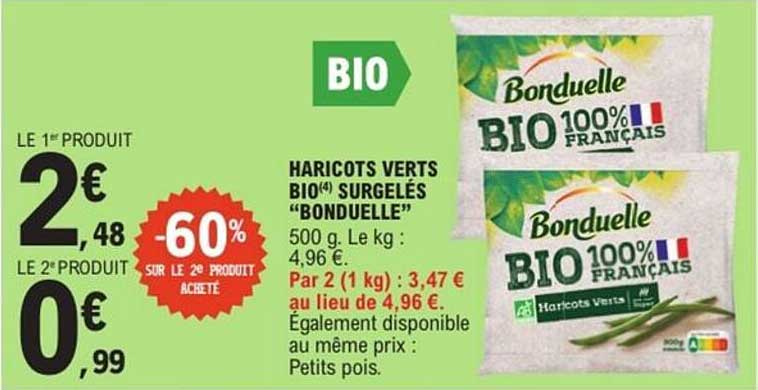 Vous cherchez à ajouter une touche saine à vos repas sans vous ruiner ? Les haricots verts bio surgelés de la marque Bonduelle sont la solution idéale. Avec leur certification bio, ces légumes présentent une qualité exceptionnelle, parfaitement adaptés pour vos plats du quotidien. Profitez de cette offre promotionnelle intéressante pour faire le plein de bienfaits nutritionnels.