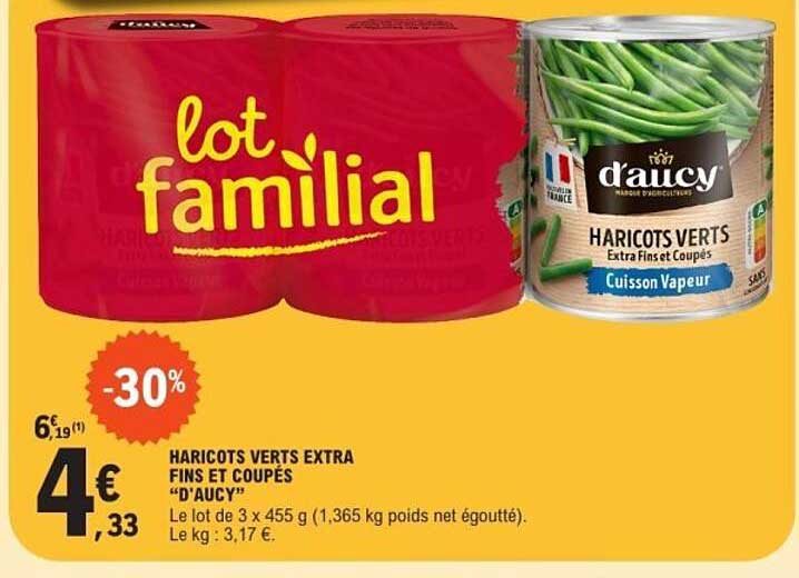 Vous cherchez une option saine et délicieuse pour agrémenter vos repas ? Les haricots verts extra fins et coupés de D'Aucy sont là pour répondre à vos besoins ! Avec cette promotion, profitez d'un lot familial qui ravira les gourmands tout en respectant votre budget. Disponibles du 4 au 15 novembre 2025, ces haricots verts sont parfaits pour accompagner vos plats, en toute simplicité.