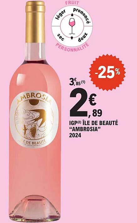 Découvrez dès maintenant la offre IGP ÎLE DE BEAUTÉ "AMBROSIA" 2024 dans le catalogue de E.Leclerc. Cette offre est valable du 01/04/2025 au 12/04/2025.