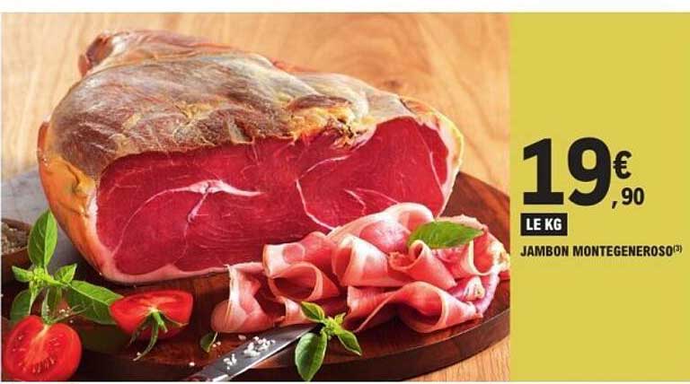 Si vous êtes à la recherche d'une viande savoureuse et de qualité pour vos repas, cette offre de jambon Montegeneroso est faite pour vous ! Proposé à 19,90€ le kg, ce jambon a tout pour séduire les amateurs de charcuterie. Que ce soit pour un apéritif, un sandwich gourmand ou une entrée raffinée, il saura ajouter une touche distinctive à vos plats.