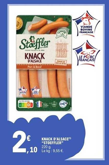 Découvrez dès maintenant la offre KNACK D'ALSACE ! "STOEFFLER" dans le catalogue de E.Leclerc. Cette offre est valable du 07/10/2025 au 11/10/2025.