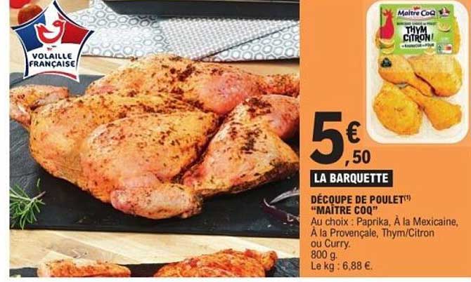 Découvrez l'offre exceptionnelle de DÉCOUPE DE POULET "MAÎTRE COQ" présentée dans le catalogue E.Leclerc. Disponible du 3 au 14 juin 2025, cette promotion vous permet de savourer un délicieux poulet mariné à un prix imbattable. Que vous soyez un amateur de cuisine ou simplement à la recherche d'un ingrédient pratique pour des repas familiaux, cette offre est faite pour vous !