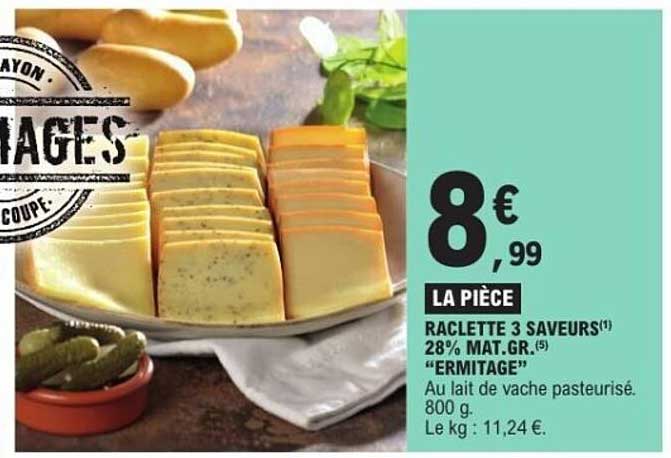 Actuellement, profitez de cette raclette à seulement 8,99 €, soit 11,24 € le kg. C'est une occasion en or, surtout si l'on considère que ce produit est habituellement proposé à un prix plus élevé. Votre portefeuille appréciera cette belle économie tout en régalant vos invités !
