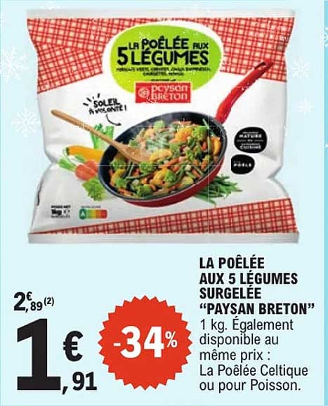 Offre de La Poêlée Aux 5 Légumes Surgelée "Paysan Breton" chez E.Leclerc