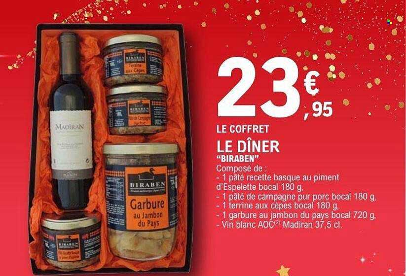 Découvrez dès maintenant la offre LE COFFRET LE DÎNER "BIRABEN" dans le catalogue de E.Leclerc. Cette offre est valable du 04/11/2025 au 24/12/2025.