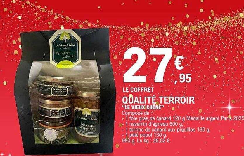 Découvrez dès maintenant la offre LE COFFRET QUALITÉ TERROIR "LE VIEUX CHÊNE" dans le catalogue de E.Leclerc. Cette offre est valable du 04/11/2025 au 24/12/2025.