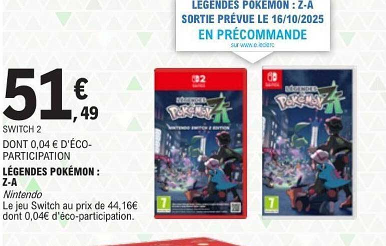 Si vous êtes un amateur de jeux vidéo, ne manquez pas l'occasion de précommander Légendes Pokémon : Z-A sur Nintendo Switch, disponible du 14 au 25 octobre 2025. Ce jeu promet une expérience immersive et palpitante dans l'univers des Pokémon. Que vous soyez un joueur aguerri ou un novice, cette offre est idéale pour enrichir votre collection.