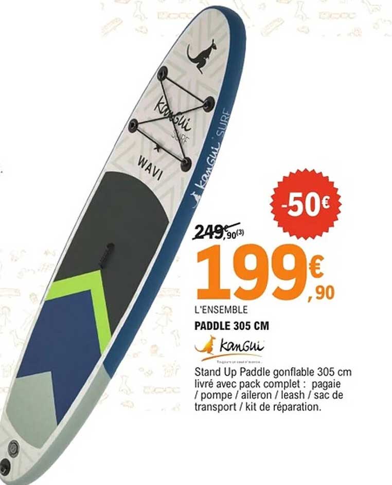 Si vous êtes à la recherche d'une activité estivale rafraîchissante, ne manquez pas cette incroyable promotion sur le Stand Up Paddle gonflable de la marque Kangui. Proposé à un prix réduit, cet ensemble complet vous permettra de profiter des plaisirs de l'eau, que vous soyez débutant ou confirmé.