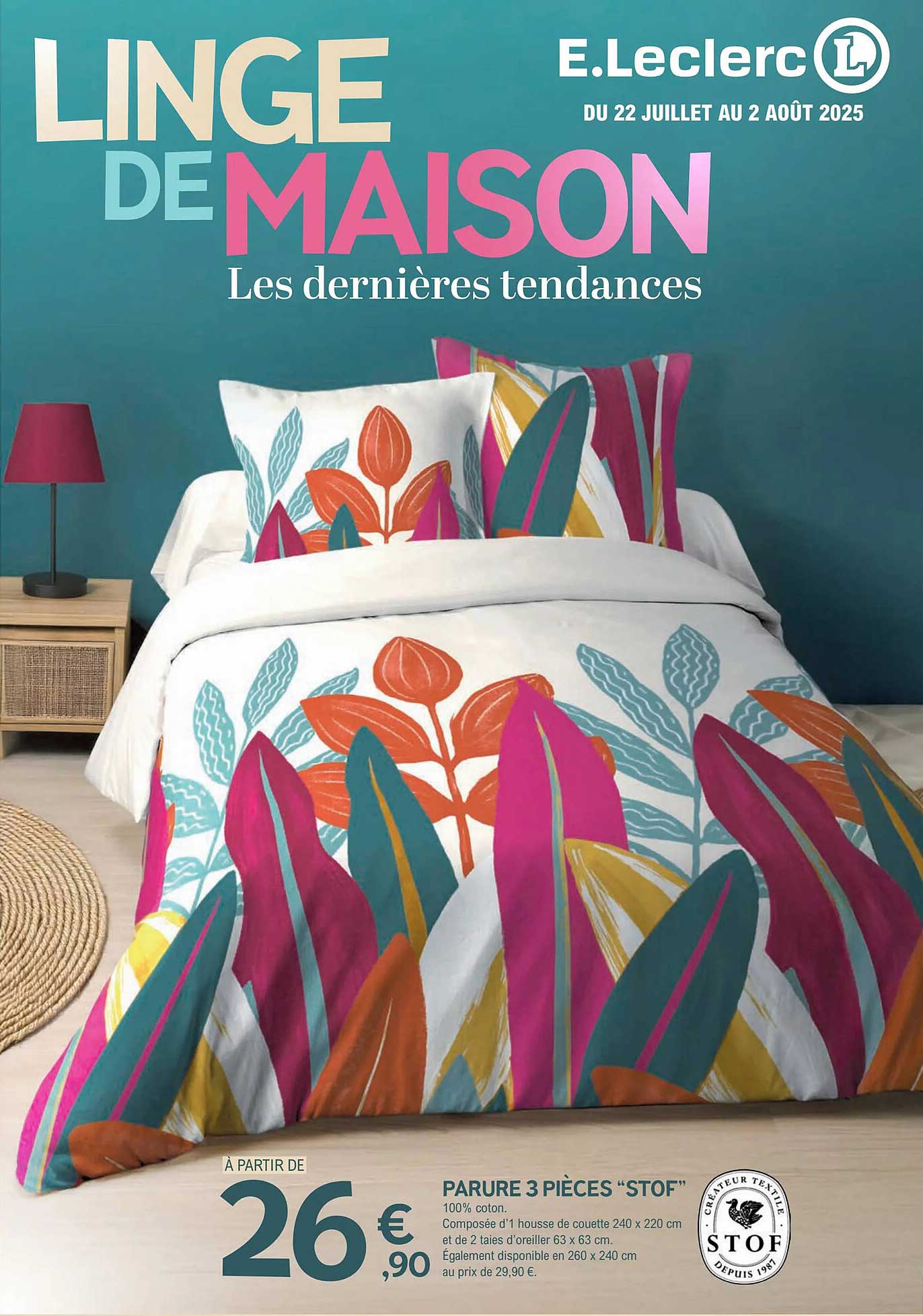 Découvrez dès maintenant la offre LINGE DE MAISON dans le catalogue de E.Leclerc. Cette offre est valable du 22/07/2025 au 02/08/2025.