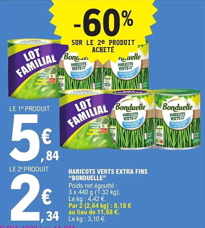 Découvrez l'offre de Lot Familial Haricots Verts Extra Fins "Bonduelle" chez E.Leclerc! Cette offre fantastique est maintenant disponible dans le nouveau catalogue de E.Leclerc. Profitez de cette occasion et économisez considérablement sur votre achat.