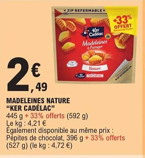 Découvrez l'offre de Madeleines Nature "Ker Cadélac" chez E.Leclerc! Cette offre fantastique est maintenant disponible dans le nouveau catalogue de E.Leclerc. Profitez de cette occasion et économisez considérablement sur votre achat.