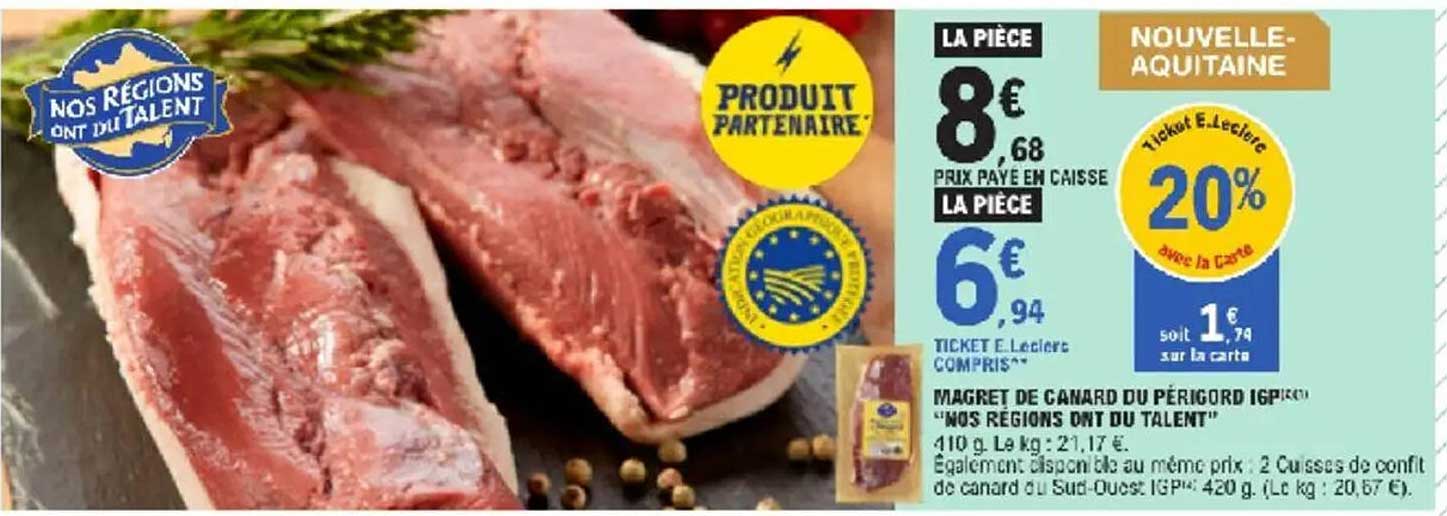 Offre de Magret De Canard Du Périgord Igp "Nos Régions Ont Du Talent" chez E.Leclerc