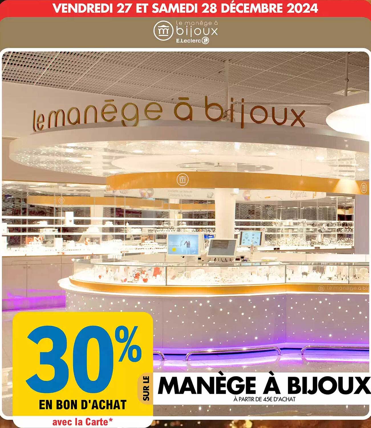 Découvrez dès maintenant la offre MANÈGE À BIJOUX dans le catalogue de E.Leclerc. Cette offre est valable du 27/12/2024 au 28/12/2024.