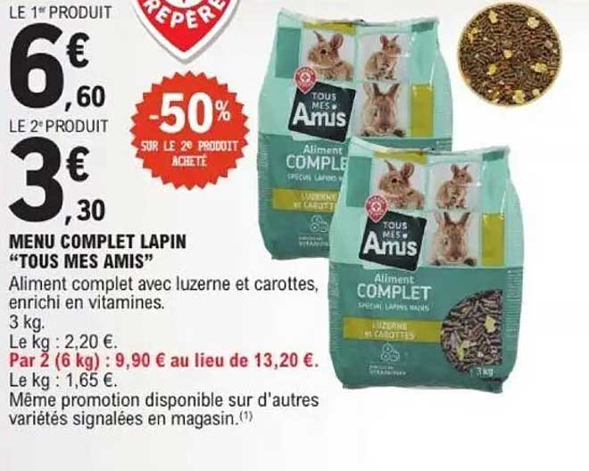 Découvrez l'offre de Menu Complet Lapin "Tous Mes Amis" chez E.Leclerc! Cette offre fantastique est maintenant disponible dans le nouveau catalogue de E.Leclerc. Profitez de cette occasion et économisez considérablement sur votre achat.