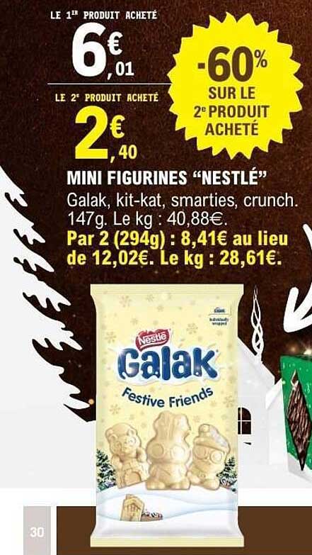 Découvrez une délicieuse promotion sur les mini figurines Nestlé disponibles en exclusivité chez E.Leclerc. Cet assortiment savoureux comprend les célèbres Galak, Kit-Kat, Smarties, et Crunch, parfaits pour les petites faims ou pour égayer vos moments festifs. Avec une durée de validité allant du 4 au 16 novembre 2025, ne manquez pas cette opportunité de vous offrir ou d’offrir ces douceurs incontournables.