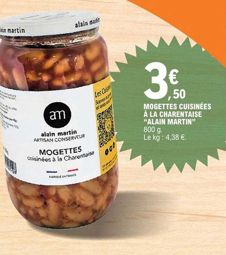 Découvrez les délicieuses mogettes cuites à la charentaise de la marque Alain Martin, un choix idéal pour vos repas en famille ou entre amis. Disponibles en bocal de 800 g, ces légumineuses sont une véritable invitation à savourer le meilleur des produits du terroir français. Profitez de cette offre exceptionnelle, valable ici du 28 octobre au 1er novembre 2025.