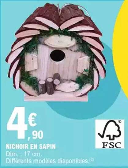 Découvrez l'offre de Nichoir En Sapin chez E.Leclerc! Cette offre fantastique est maintenant disponible dans le nouveau catalogue de E.Leclerc. Profitez de cette occasion et économisez considérablement sur votre achat.