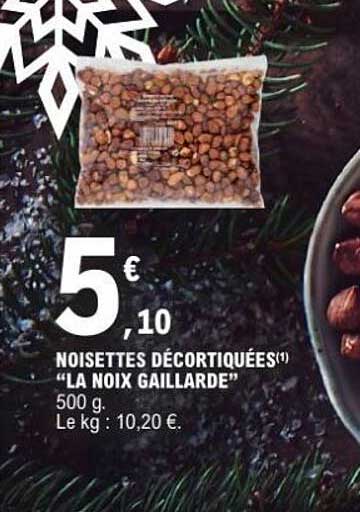 Découvrez dès maintenant la offre NOISETTES DÉCORTIQUÉES(*) "LA NOIX GAILLARDE" dans le catalogue de E.Leclerc. Cette offre est valable du 04/11/2025 au 15/11/2025.